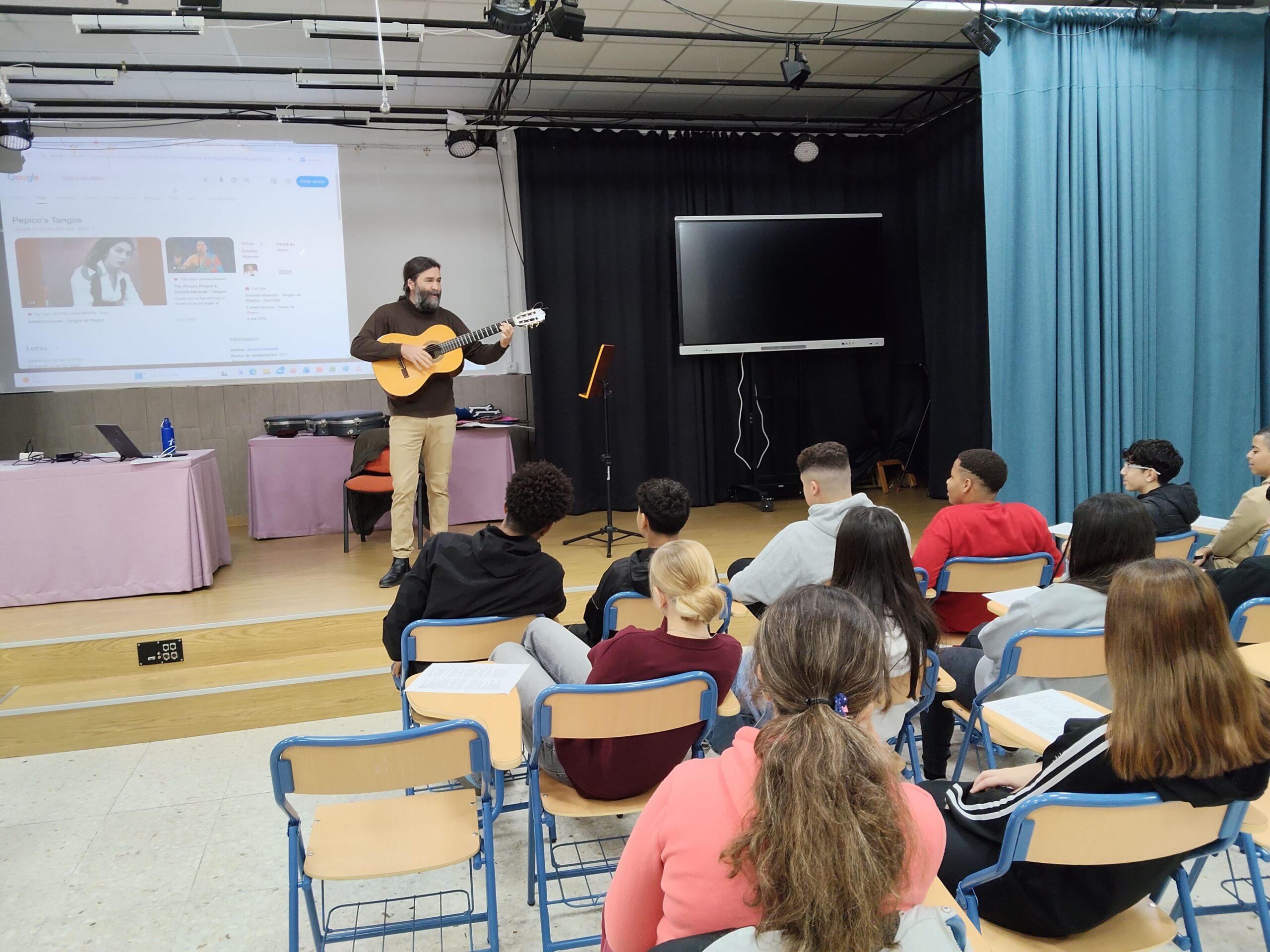 Para la celebración del aniversario del día en que el flamenco se reconoció como patrimonio inmaterial de la humanidad, se han llevado a cabo múltiples actividades para acercar al alumnado a la comprensión del flamenco. Entre ellas, se hizo un taller específico de iniciación a la distinción de los cantes con un trabajo de acercamiento a los tangos y a los fandangos, entre el departamento de música y el de filosofía. El objetivo no era solo aprender a diferenciar cómo es el compás de tangos o cómo se pasa de un fandango folklórico, que se puede cantar a coro a uno personal en que la libertad interpretativa no lo permite, sino empezar a apreciar el increíble valor musical que tiene el flamenco desde una concepción mestiza de sus orígenes y desarrollo. En definitiva, se trata de ir reconociendo la maravillosa riqueza que caracteriza al flamenco para ir acercando al disfrute de la misma.